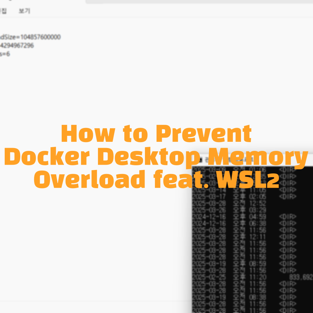 How to Prevent Docker Desktop Memory Overload feat. WSL2도커 사용하면 간혹 갑자기 컴퓨터가 느려지는 경우가 있으실거에요. 위 사진처럼 VmmemWSL이 메모리가 많이 잡고 있을거라 설정만 해두면 돼요. 그리고 Docker는 항상 켜둘 필요 없으니 사용하시고 끄시거나 시작 앱에서 제거하는 걸 권장해요. 우선 메모리를 정상으로 돌리기 위해 도커 끄고 WSL를 완전히 꺼주세요. 명령 프롬프트 관리자 모드에서 작성하시면 돼요.wsl --shutdown꺼주시고 .wslconfig로 메모리 제한을 할게요. 이 파일 위치는 말씀 드릴건데 파일이 없으시면 새로 만드시면 되고 있으시면 Notepad 열어서 수정하시면 돼요.저는 편하게 cmd창에서 수정할게요..wslconfig..