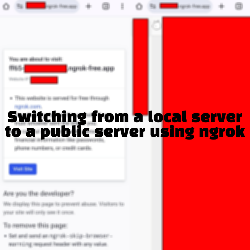 Switching from a local server to a public server using ngrok with React Project리액트 웹 프로젝트 진행하다가 모바일 화면으로 테스트하고 싶어서 찾아보니 ngrok을 알게 됐어요. 로컬 호스트로 하면 진행중인 컴퓨터 내에서만 접근 가능한 주소라 그걸 해결하고자 했어요. 우선 리액트 프로젝트에 ngrok을 사용하기 전에 설치를 해주셔야 해요.ngrok 설치npm install -g ngrok설치하셨으면 ngrok 회원가입 후 프로젝트에 인증 토큰 등록해주셔야해요. 우선 사이트로 가서 가입해주세요. 가입 후 토큰을 로컬에 등록해주세요.https://ngrok.com/ ngrok | API Gateway, Kubernetes Networking + ..