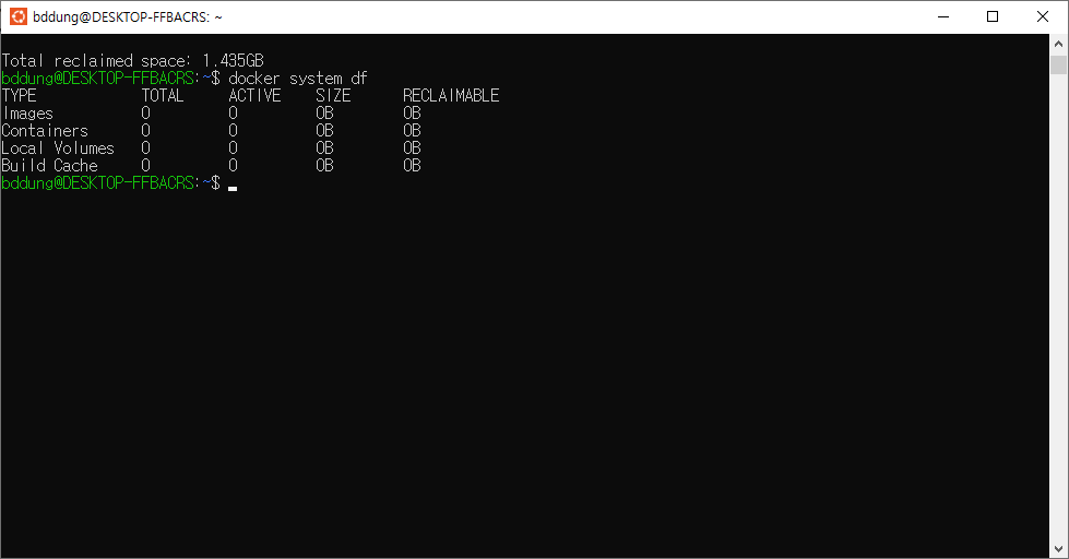 위 과정을 다 따라했다면 이미지와 컨테이너가 다 제거된 것을 볼 수 있는데 빌드 캐시는 아직 남아있는 경우가 있어서 용량 차지를 하는데요. 꼭 삭제할 필요는 없지만 간혹 디스크 용량 부족, 불필요한 캐시 쌓임 및 빌드 도구나 설정 변경으로 인해 삭제해야 하는 경우가 발생하는데요. 하지만 꼭 해야 하는건 아니에요. 삭제해도 Docker에서 계속 새로운 빌드 생성할 때 캐시를 사용하고 필요한 부분만 다시 빌드하기 때문에 필수는 아니에요. 그래도 명령어는 적어둘게요.