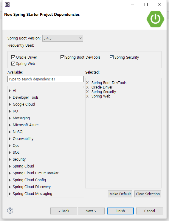 우선 제 이클립스 버전은 2024.12 버전이며 jdk는 17버전으로 사용하고 있습니다. 도커 연결 할려고 하다보니 쓰던 버전 2022.03에서 업데이트를 했더니 버전이 업그레이드 되었더라고요. 스프링 부트 프로젝트 하는데 상관 없을 것 같아서 일단 진행중이에요. 아무튼 스프링 부트 프로젝트 생성하실려면 이클립스 마켓플레이스에서 스프링 설치해야 해요.
