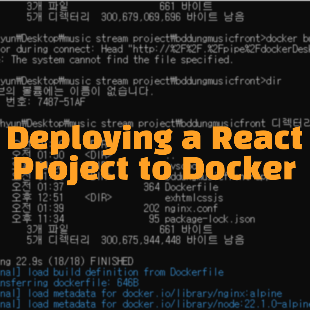 Deploying a React Project to Docker이번 포스팅은 제가 프로젝트 진행 도중에 윈도우 11로 변경할려다가 갑자기 프로젝트 사라질까봐 도커에 올릴려고 하다보니 글을 작성하게 되었어요. 이제 시작할건데 프로젝트 폴더에 가셔서 빌드를 먼저 해주세요.npm run build저는 빌드 하기 전에 Dockerfile이랑 리액트 SPA가 동작할 수 있도록 해주는 Nginx.conf 파일을 미리 생성을 했어요. 그런데 생성할려면 위치는 프로젝트 폴더 직전 폴더에 작성하셔야 해요. 저는 두 파일을 따로 메모장 열기 귀찮아서 cmd 창에서 작성을 했어요.도커 파일 생성notepad Dockerfile도커파일 내용# 1단계: 앱 빌드FROM node:22.1.0-alpine AS builderWOR..